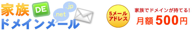 家族DEドメインメールは、独自ドメインにてメールアドレスをご利用頂けるサービスです。